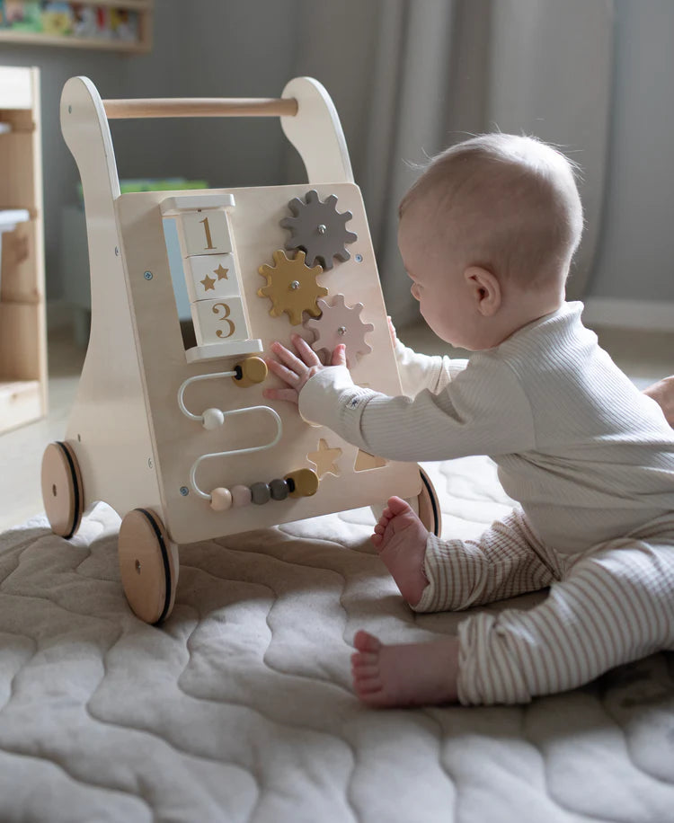 Susține primii pași ai micuțului tău cu stil și siguranță! Acest antepremergător superb din lemn de la Jabadabado este partenerul ideal pentru perioada în care bebelușul începe să exploreze lumea pe două picioare.