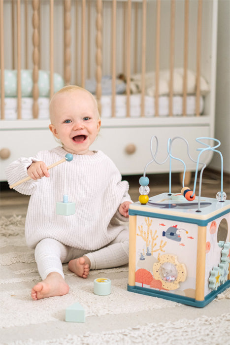 Mult mai mult decât un simplu cub Deși compact (20x20 cm), cubul "Lumea Subacvatică" este surprinzător de complex. Fiecare latură spune o poveste despre viața marină și propune o activitate educativă diferită, menținând interesul copilului pentru mult timp.