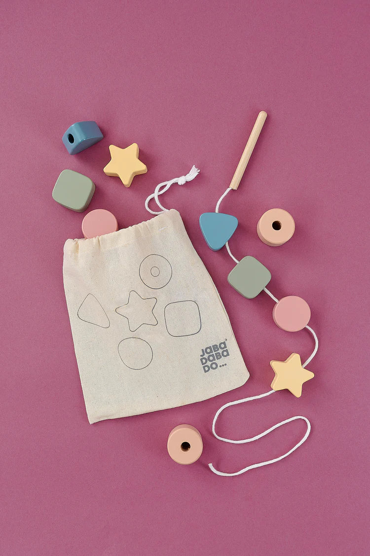 - Joc de insiruit margele: Margele mari din lemn, in forme si culori diverse, perfecte pentru dezvoltarea motricitatii fine, a dexteritatii si a coordonarii ochi-mana.