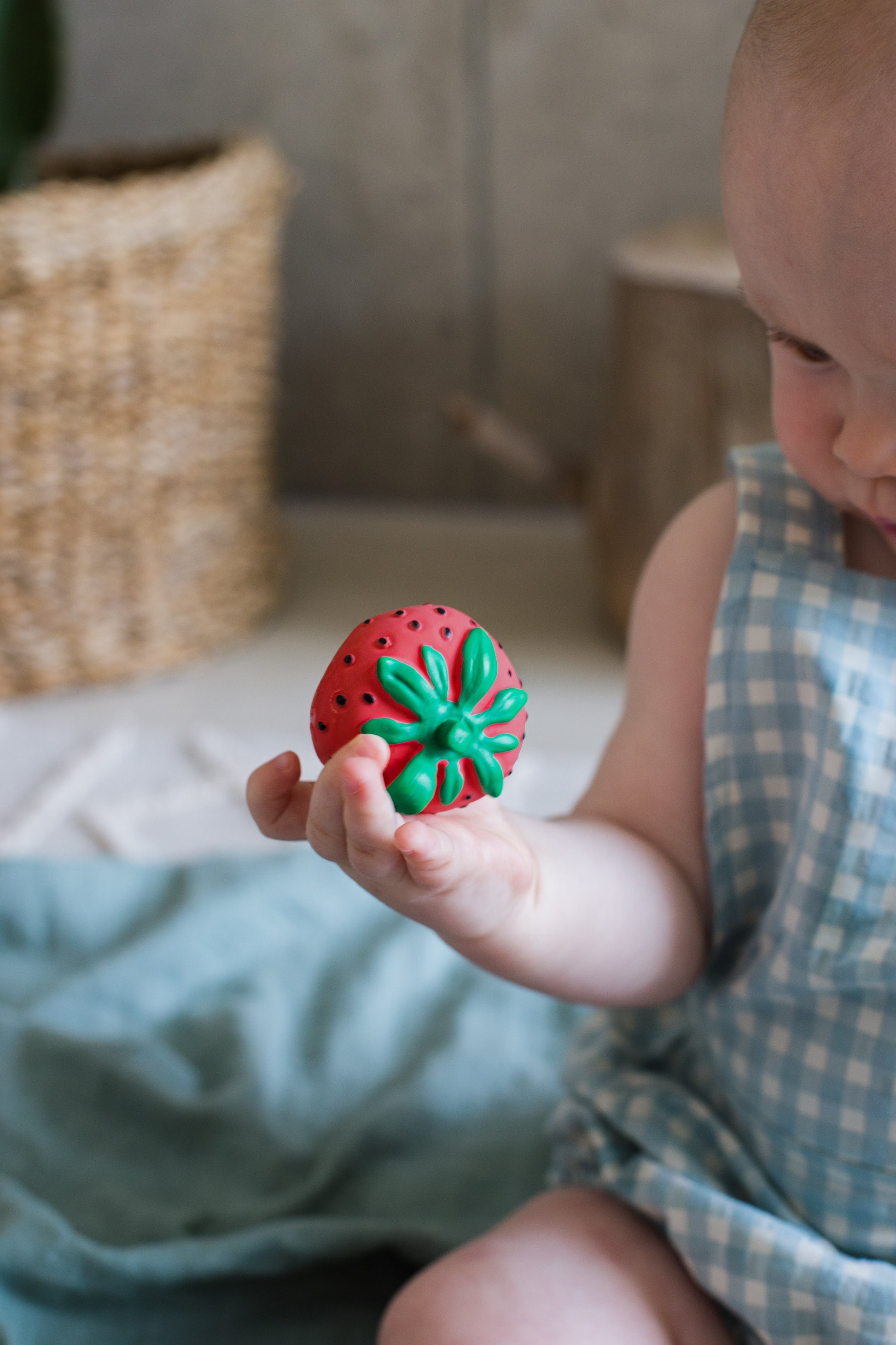 Sweetie the Strawberry nu este doar o căpșună adorabilă, ci un ajutor de nădejde în perioada erupției dentare. Designul său realist, cu textura fină a semințelor la exterior, oferă o stimulare senzorială excelentă și ajută la calmarea gingiilor iritate.
