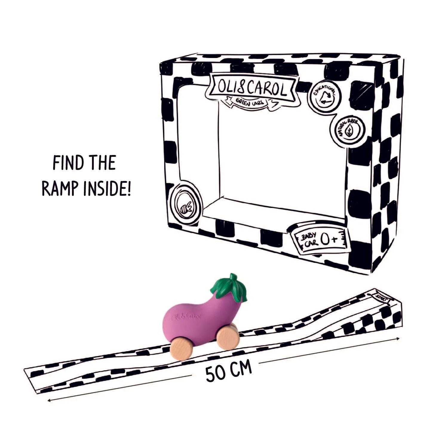 Mașinuță Ecologică din Cauciuc & Lemn - Emma the Eggplant (Oli & Carol)