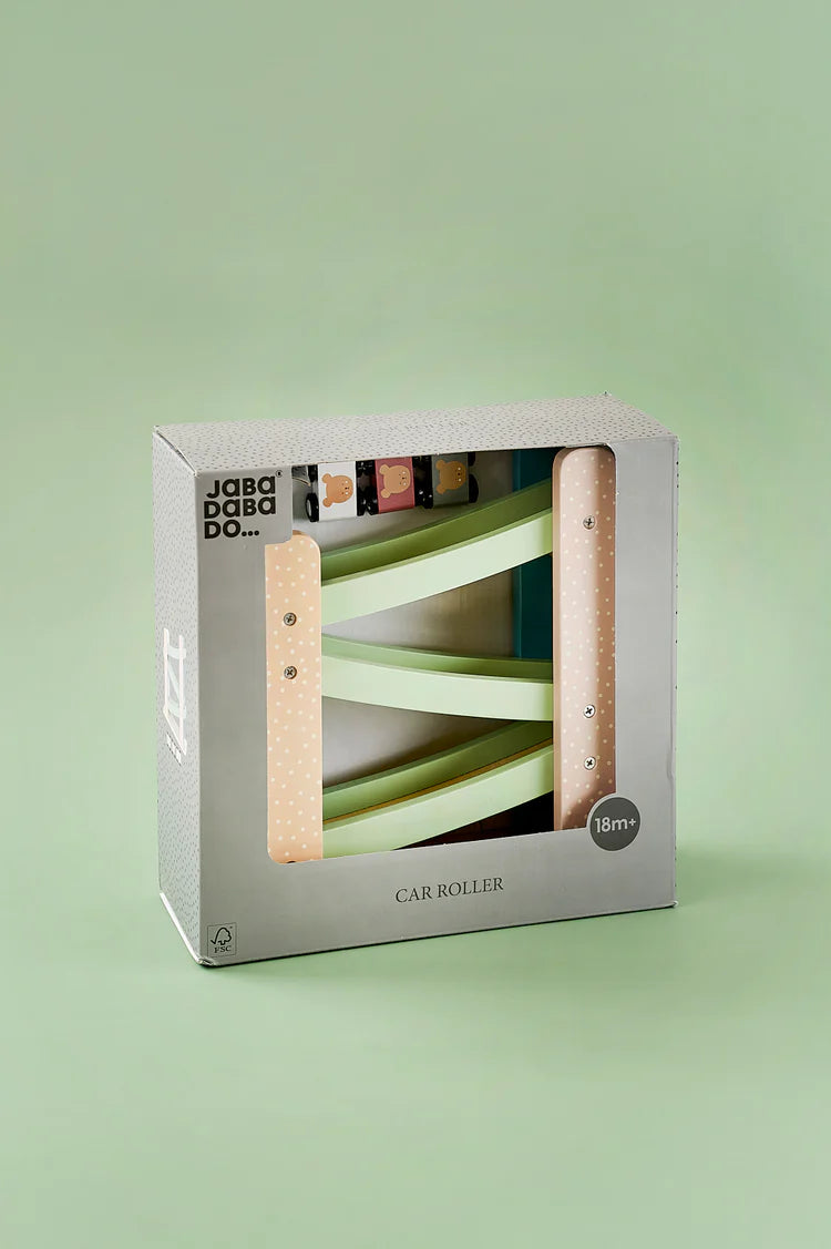 - Conținut: 1 x Pistă etajată, 4 x Mașinuțe din lemn.