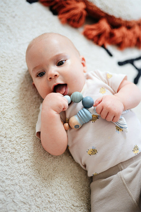 - Include: 1 Zornăitoare, 1 Jucărie de apucat/Dentiție, 1 Lavetă textilă.